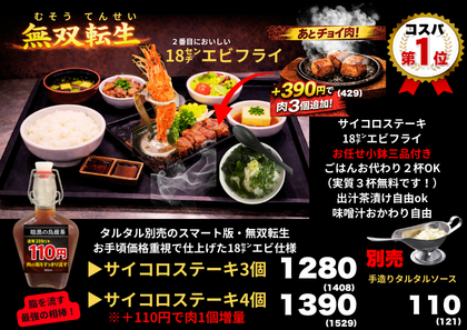 +390円(税込429円)で肉1.6倍可能!