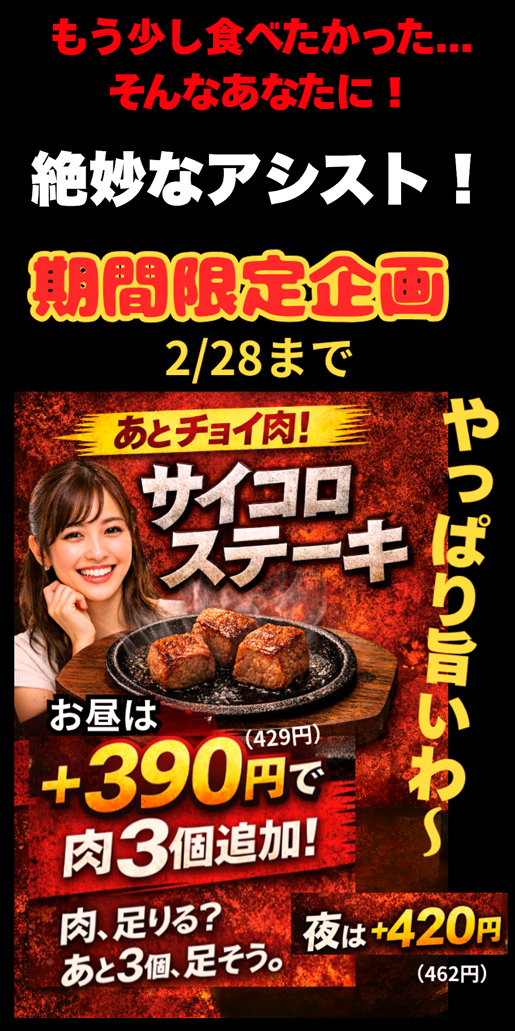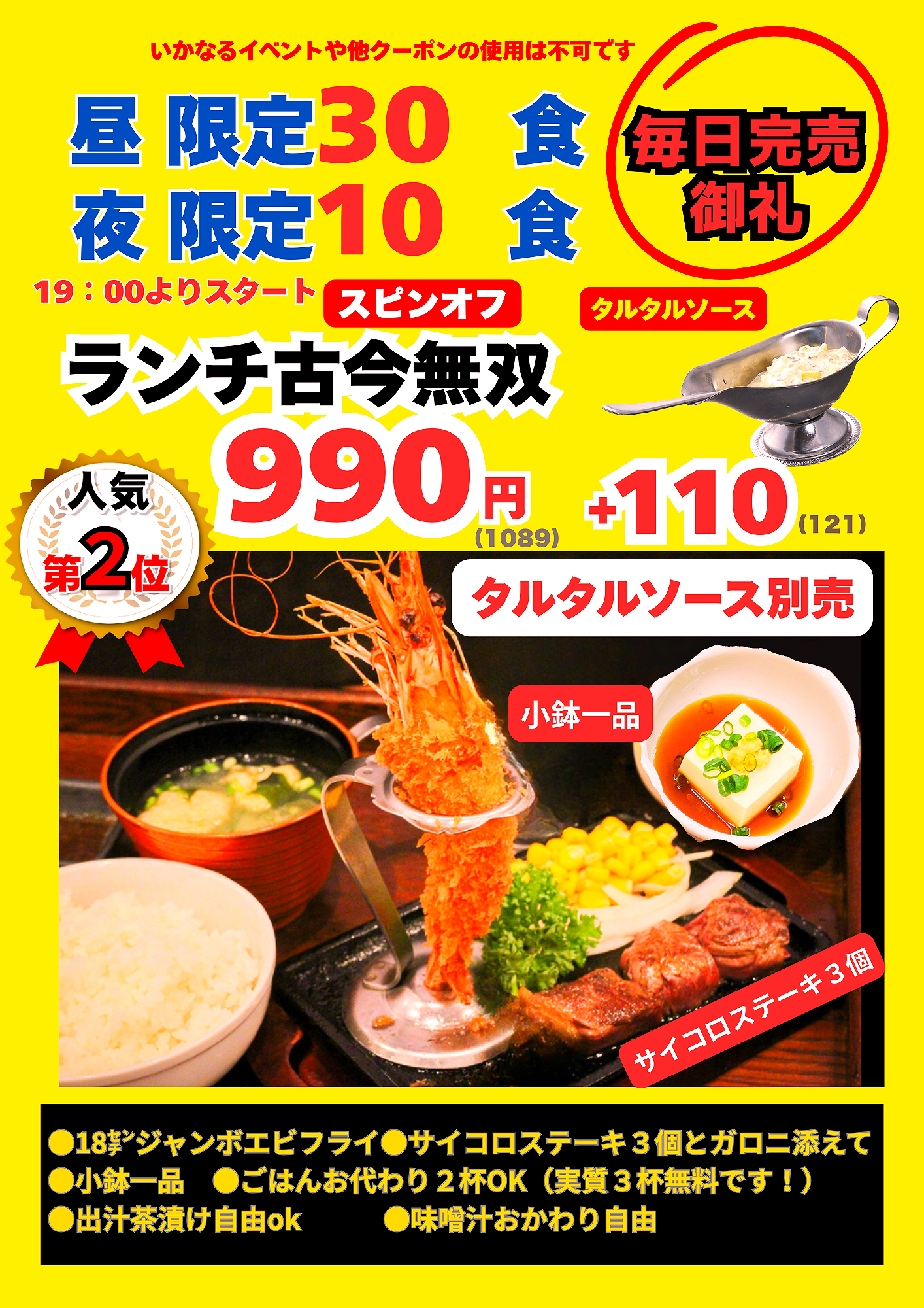 が20㌢エビフライ1本無料サービスで狙い目です!